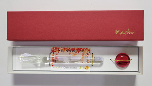プレミアムシリーズには各ガラスペンのモチーフに合わせた、個別カラーの特製ペンレストが付属します。